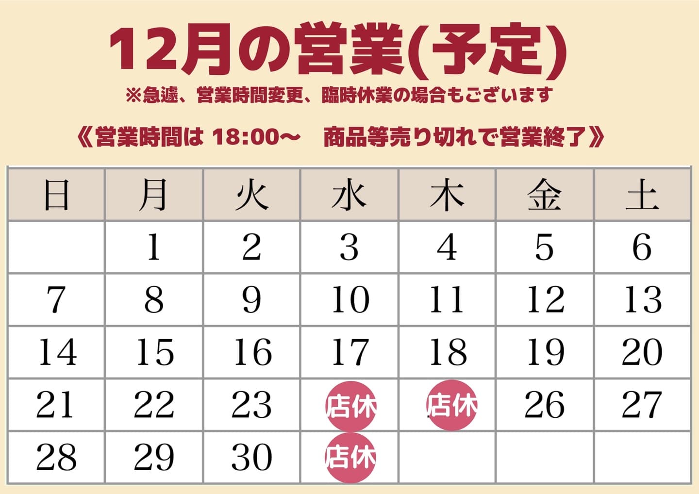 (店内作業等、昼のみ営業、夜のみ営業、店休日などの為)