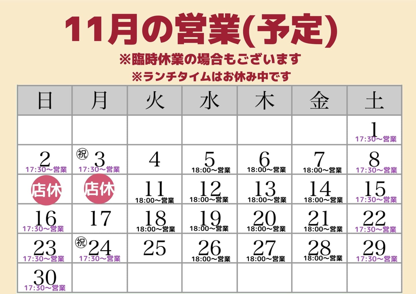 ⚠️現在【ご予約希望の場合】は夜の時間帯で